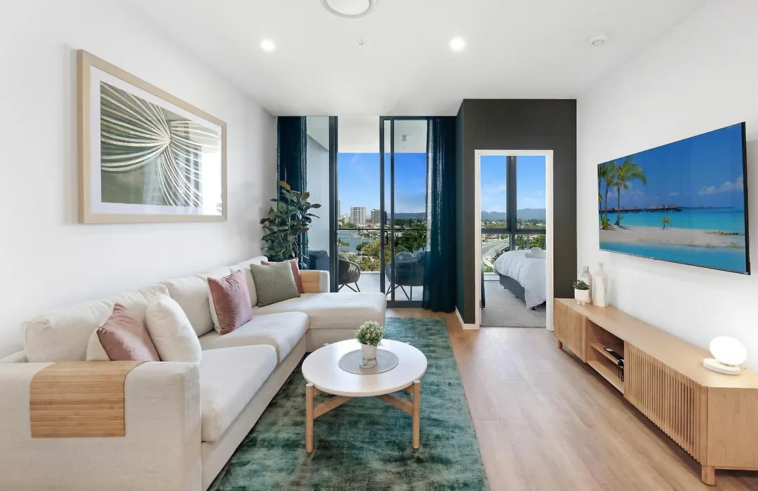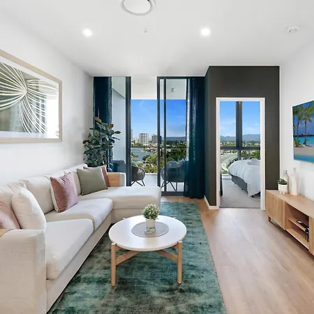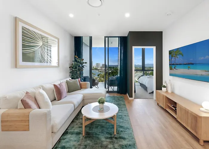 The 100 m² apartment is nestled in a residential area, a short way from the SkyPoint Observation Deck. The riverside park "Cascade Gardens" is just 1.3 km from Brand New Modern 2Bed 2Bath Canal View apartment, and Gold Coast, QLD airport is less than a 26-minute drive away. The central Chevron Renaissance Shopping Centre is located 15 minutes' walk away, and the Pink Poodle Sign is just a few steps from the property.